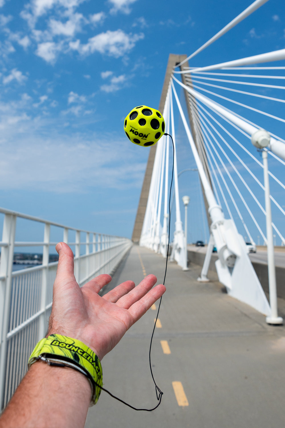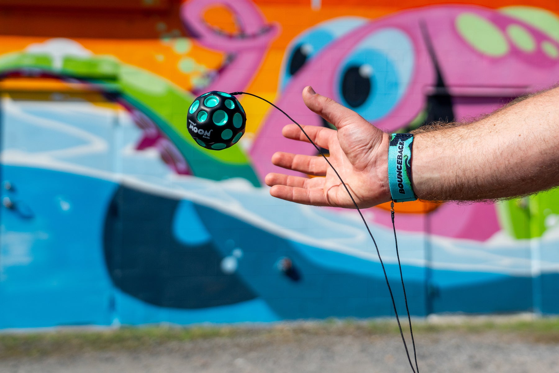 Saca tu Moon Ball a pasear y rebota cuando necesites un descanso. ¡Prepárate para una experiencia Moon Ball totalmente nueva! Bounceback incluye una Moon Ball con una correa ajustable para la muñeca. ¡Es adictivo rebotar por todas partes! Simplemente lánzala frente a ti para que rebote y atrápala al instante.